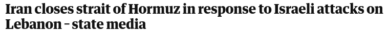 >Live updates: Iran closes the Strait of Hormuz in response to Israeli attacks on Lebanon, per Iranian state mediawhat a shock