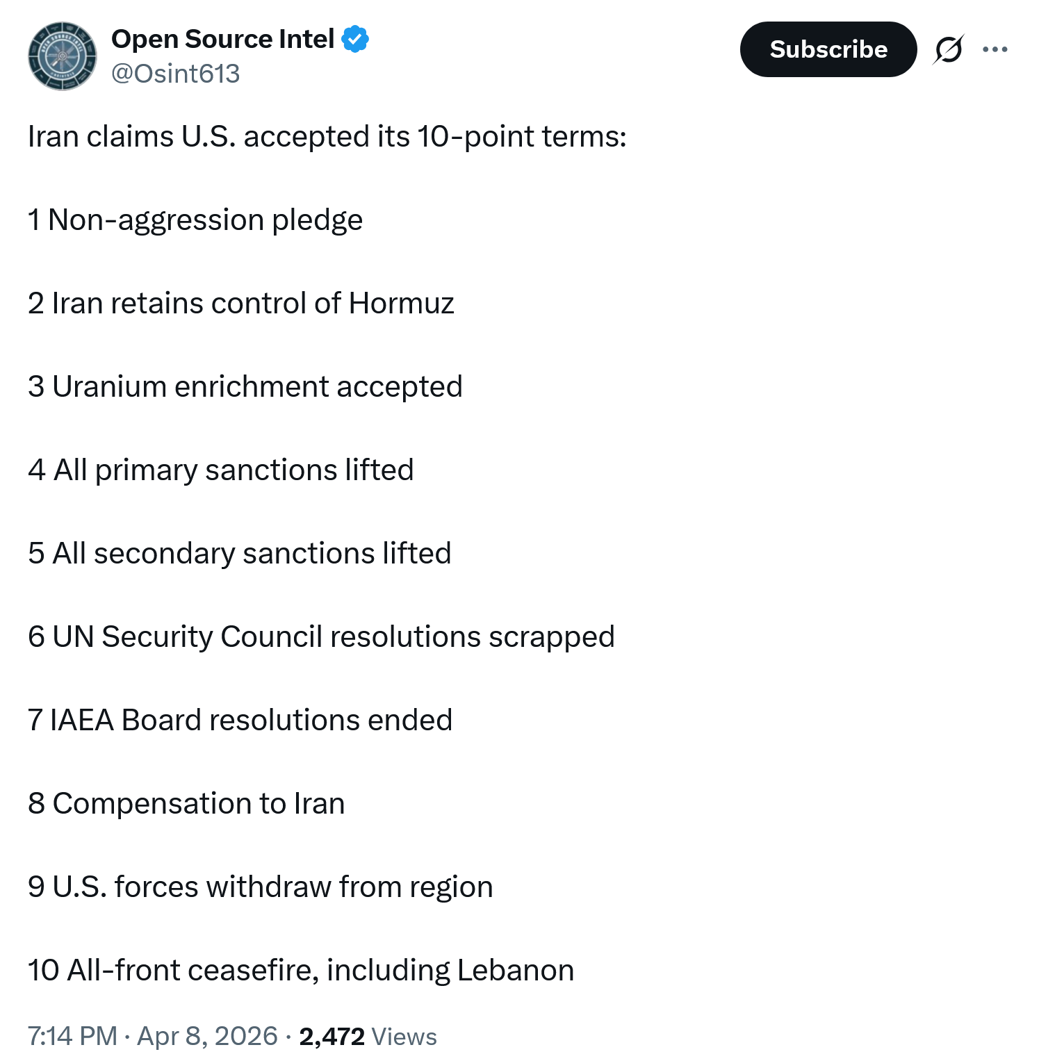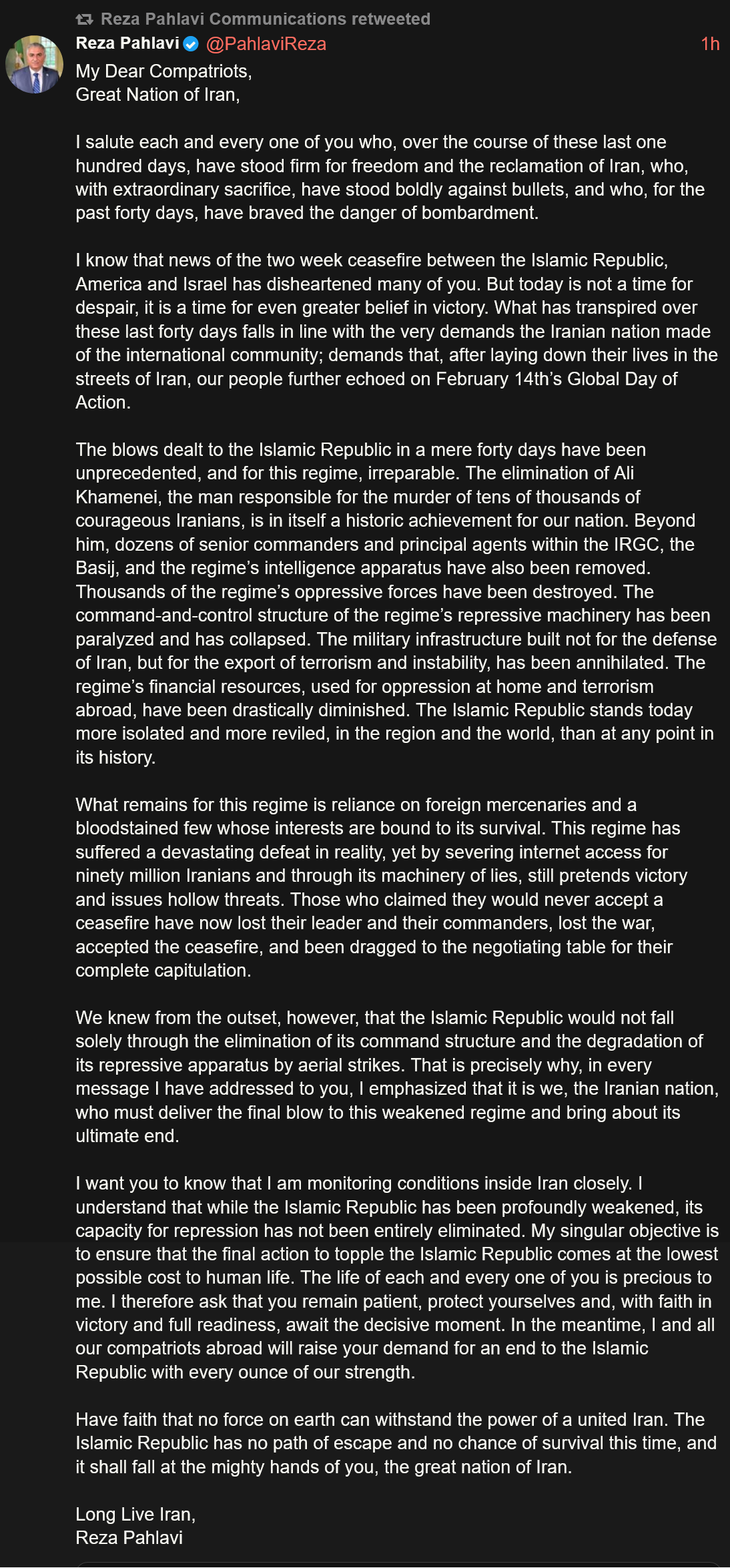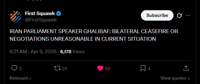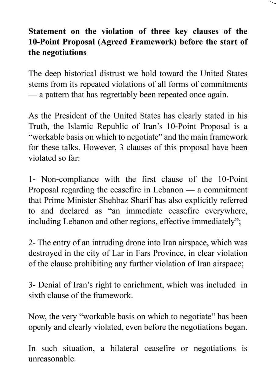 BREAKING: Statement from Iranian Parliament Speaker Mohammad Bagher Ghalibaf regarding violations of the U.S.-Iran ceasefire:He states that the previously workable basis for negotiation has been violated, and that a ceasefire and further negotiations are now unreasonable. ...