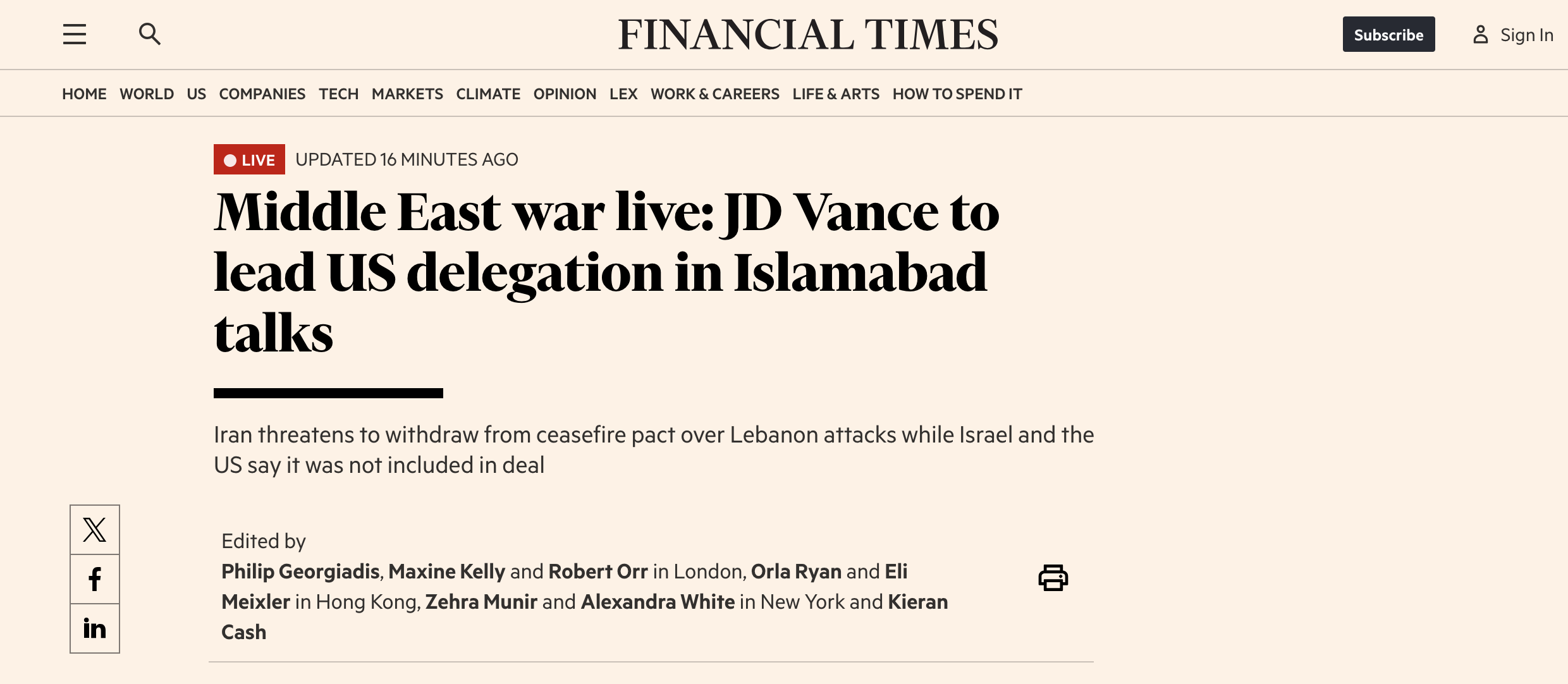 Previous: >>532743697Day: 1 of the 14-day ceasefire™ periodDay: 40 of the Special Military Operation™▶RECENT:>An oil tanker attempting to cross the Strait of Hormuz has just been turned around and is heading back to the Persian Gulf.>Iran closes the Strait of Hormuz, which was partially open for around 10 minutes this morning, until further notice due to Israel’s attack on Lebanon – Fars>Iran is preparing a military response to the Israeli aggression carried out in Lebanon – Fars>Trump confidant Mark Levin is currently on air with a shaking voice crashing out over the ceasefire with Iran. https://files.catbox.moe/pu9fh1.mp4>Associated Press reports that Iran and Oman will charge tolls for all ships passing through the Strait of Hormuz as part of the two-week ceasefire plan.>Reports of direct impacts in Be'er Sheva and Tel Aviv, according to Israeli media.>The U.S. negotiation team will consist of Vice President JD Vance and the two previous envoys, Jared Kushner and Steve Witkoff.>Iran says the US has agreed to its 10 point peace plan, which includes total Iranian control over the Strait and US troops withdrawing from the Middle East.▶WARNING:>Do not trust any "happenings" without link/proof>Uкraine / Russia discussions belong in uнg or cнug▶KINO:https://files.catbox.moe/cbd7ug.mp4https://files.catbox.moe/2hwzcx.mp4https://files.catbox.moe/smmsfw.mp4https://files.catbox.moe/x0fbgv.mp4https://files.catbox.moe/20lpu8.mp4▶Live-streams:https://www.youtube.com/watch?v=4E-iFtUM2kk https://www.youtube.com/watch?v=TdcrT5OcS9c https://www.youtube.com/watch?v=53G-Oy4r6M4 ▶Telegram channelshttps://rentry.org/tgnews▶Israel Rocket Alertshttps://www.tzevaadom.co.il/en/▶Air Traffichttps://www.flightradar24.com/https://flightaware.com/livehttps://globe.adsbexchange.com/▶Maritime Traffichttps://www.marinetraffic.com/https://www.vesselfinder.com/