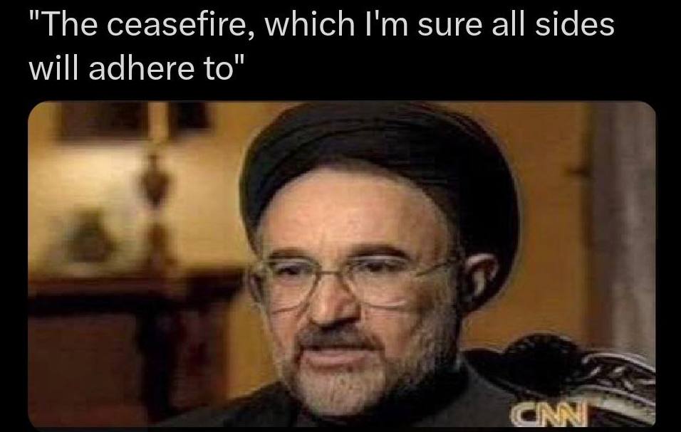 >>532747277letting Iran dictate Israel's actions was always going to be a non-starter lmaoI wonder what the Pakistani announcement was trying to accomplish. they made themselve look like retards claiming that was part of the agreement.