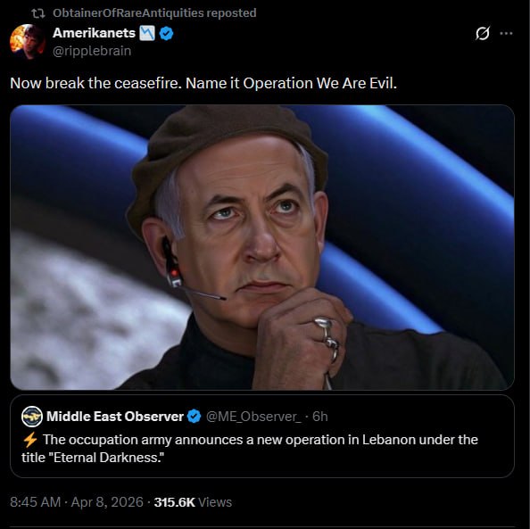 >>532749679Israel blew up the talks by continuing to attack Lebanon. Given the history of betrayal, Iran has to dump ceasefires and negotiations quickly if any terms aren't kept.>No no, Iran was supposed to let Israel keep doing whatever they wanted while removing their only pressure tactic for two weeks!
