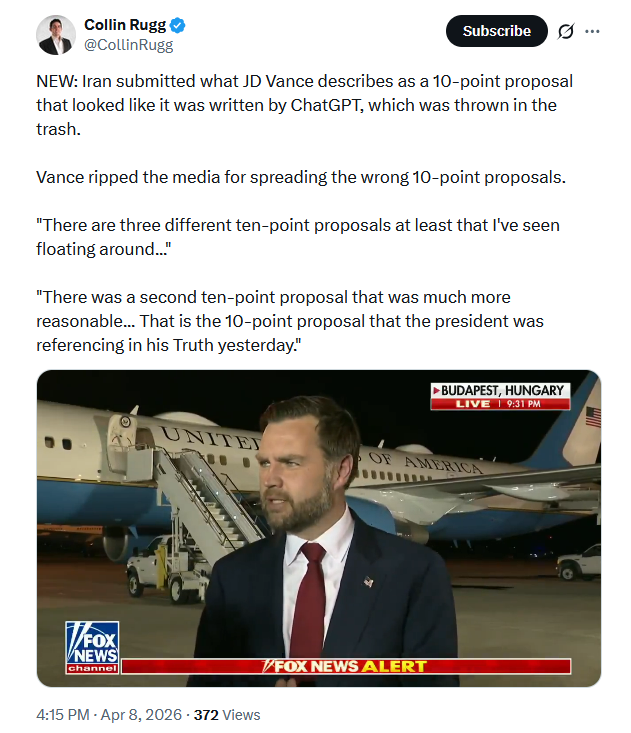 Vance confirmed there was a different 10 point plan submitted by Iran, not the old one that was spammed everywhere