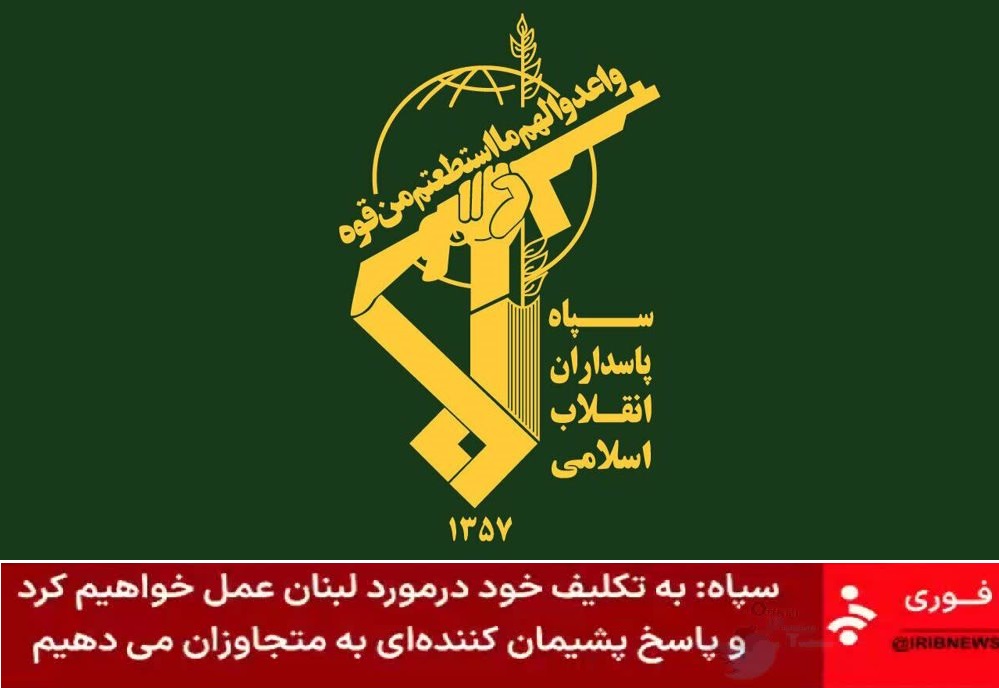 BreakingIslamic Revolutionary Guard Corps: We will fulfill our duties vis-a-vis Lebanon and carry out a chastening response.— Iranian State Media Channel