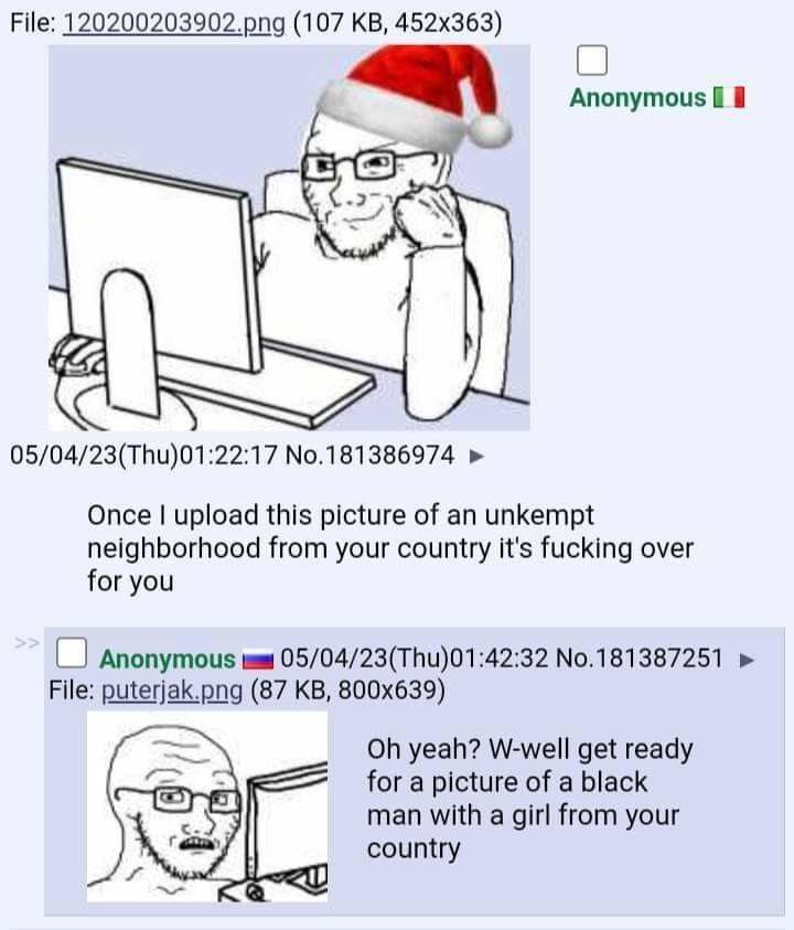 >>532753224>>532753351>>532753464It was fun watching Russia's closest ally and partner in Syria getting buck broken by the mutts. I was hoping they would destroy their power plants and bridges as well, but I'm satisfied none-the-less. But now that its over I can go back to mocking you zigger retards.