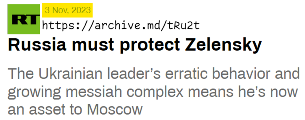 https://tass.com/politics/2112751>zelenski: protected by dear partner israel>ordinary russians: human hunting grounds for molok