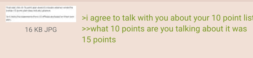>i agree to talk with you about your 10 point list>>what 10 points are you talking about it was 15 pointsfucking kek, the US is trying to gaslight everyone.