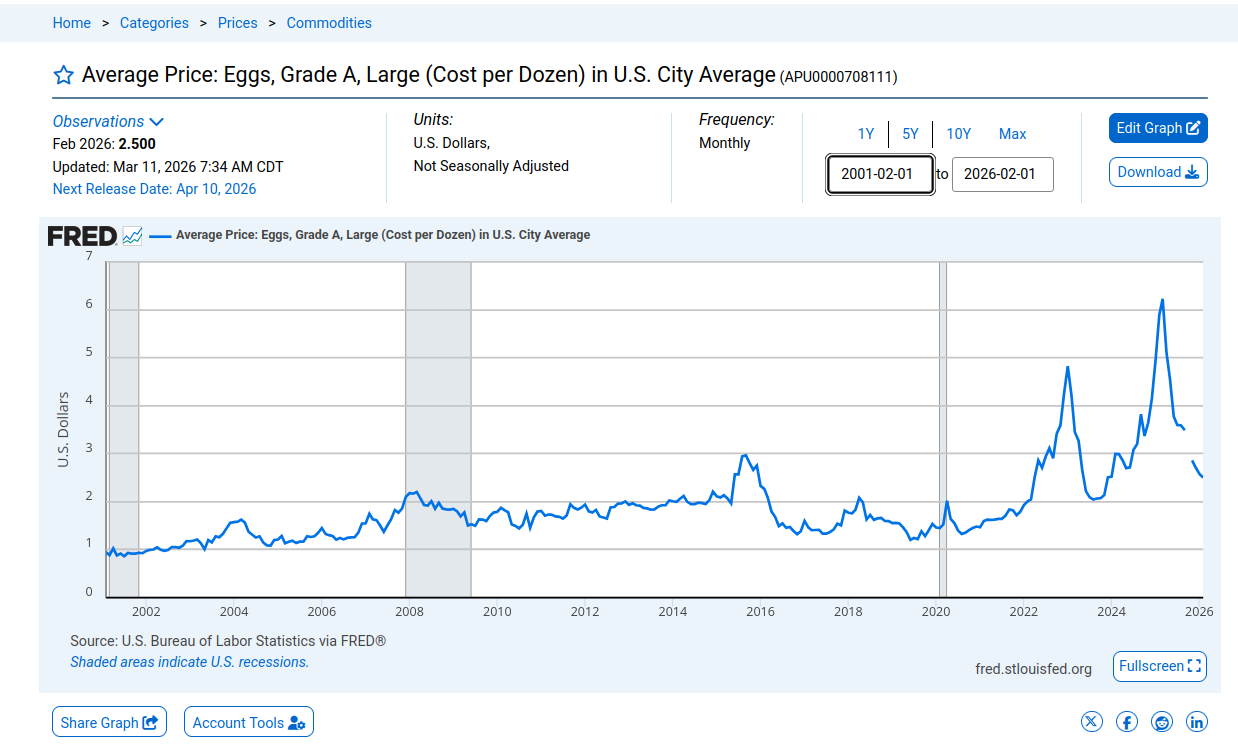 But the actual inflation-adjusted all-time lows were recorded throughout Trump's first term. So he's done it again ladies and gentlemen! Donald J. Trump is the Master of Egg Affordability, which is very MAGA. I love our GEOTUS!