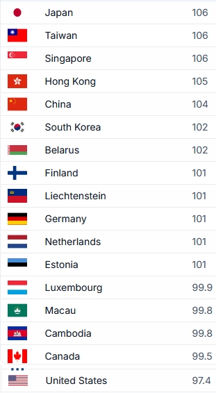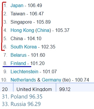 >>532780359>>532780415Your country and every other country above Germany has literally never accomplished anything meaningful in history. The United Kingdom, France and Germany alone basically created the modern world alongside their diaspora in the United States. What the fuck has Finland accomplished? Chink countries like yours outright lie about IQ because the historical record blatantly shows where the most intelligent people exist.