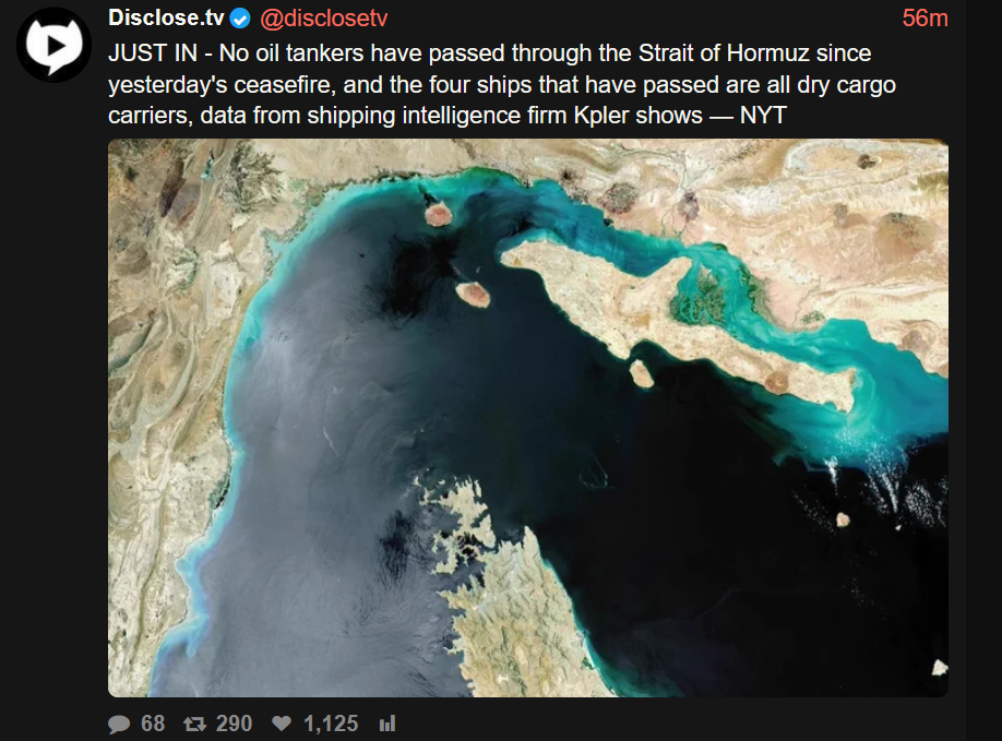 no oil has passed the strait of hormuz in the ten minute ceasefire
