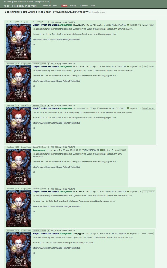 I’m a bloodline family member of the Rothschild Dynasty. I’m the Queen of the Illuminati. Mossad. MK Ultra Victim/Slave.Here and now I do the Taylor Swift is an Israeli Intelligence Asset dance contest beauty pageant twirl.https://www.reddit.com/user/Scared-Fishing14/submitted/33
