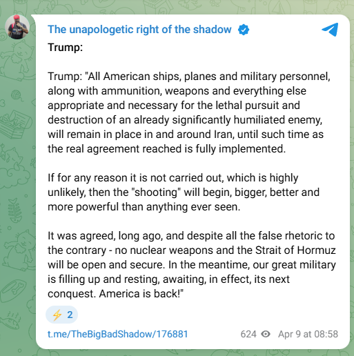 ceasefire will last till Fridayonce the markets are closed, US will resume bombing Iran