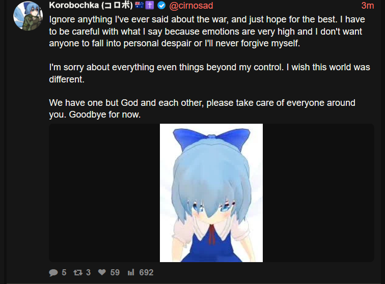 >>532784893That is true, but my point is that in both cases the disaster could've been averted with better leadership and if higher priority was given to the lives of regular people in the provinces.>>532784904I do cry because that's really sad.