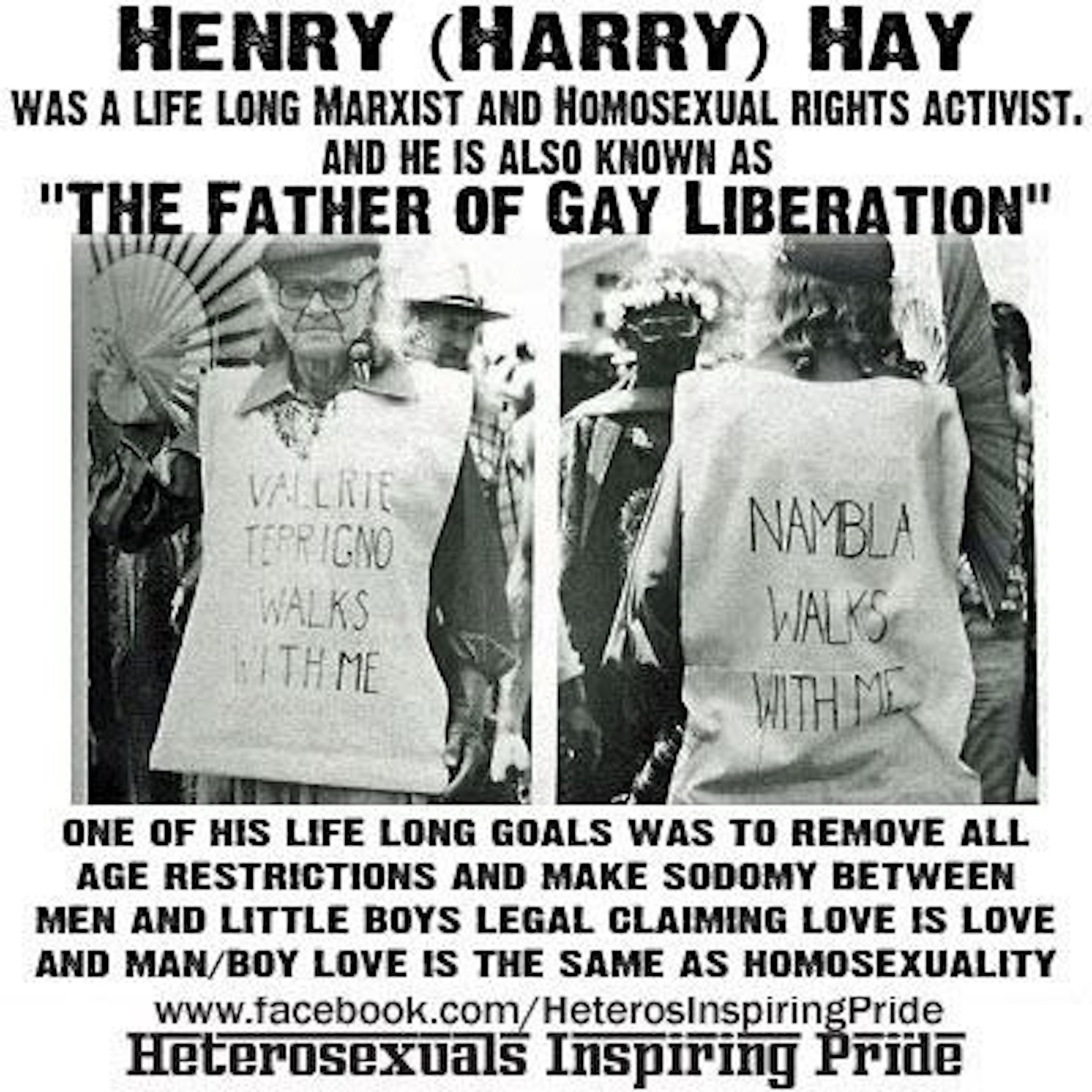 >>532779068>calling you pedarasts>false premisethe pride flag was made by harvey milk. he used to take in runaway teenage boys and give them drugs and rape them to death like ed buck. lgbt was started by a bunch of former nambla members like harry hay as a re-brand of the boy love movement of the 70's. if you don't want to be associated with pedophilia i'd recommend picking a new label and choosing a new flag.