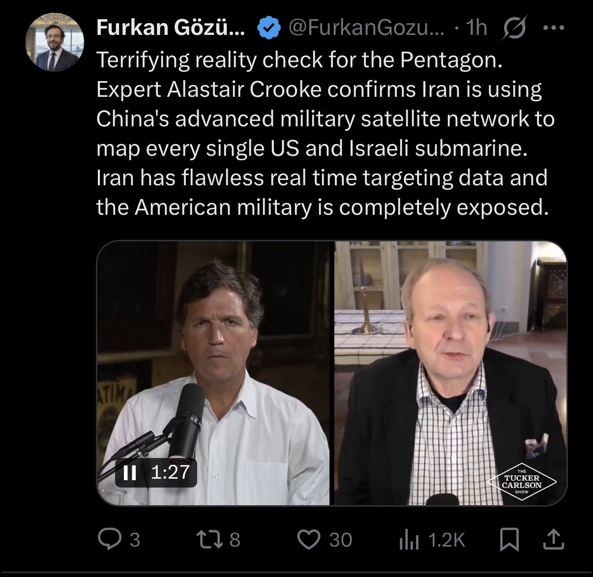 Expert Alastair Crooke confirms Iran is using China's advanced military satellite network to map every single US and Israeli submarine. Iran has flawless real time targeting data and the American military is completely exposed.
