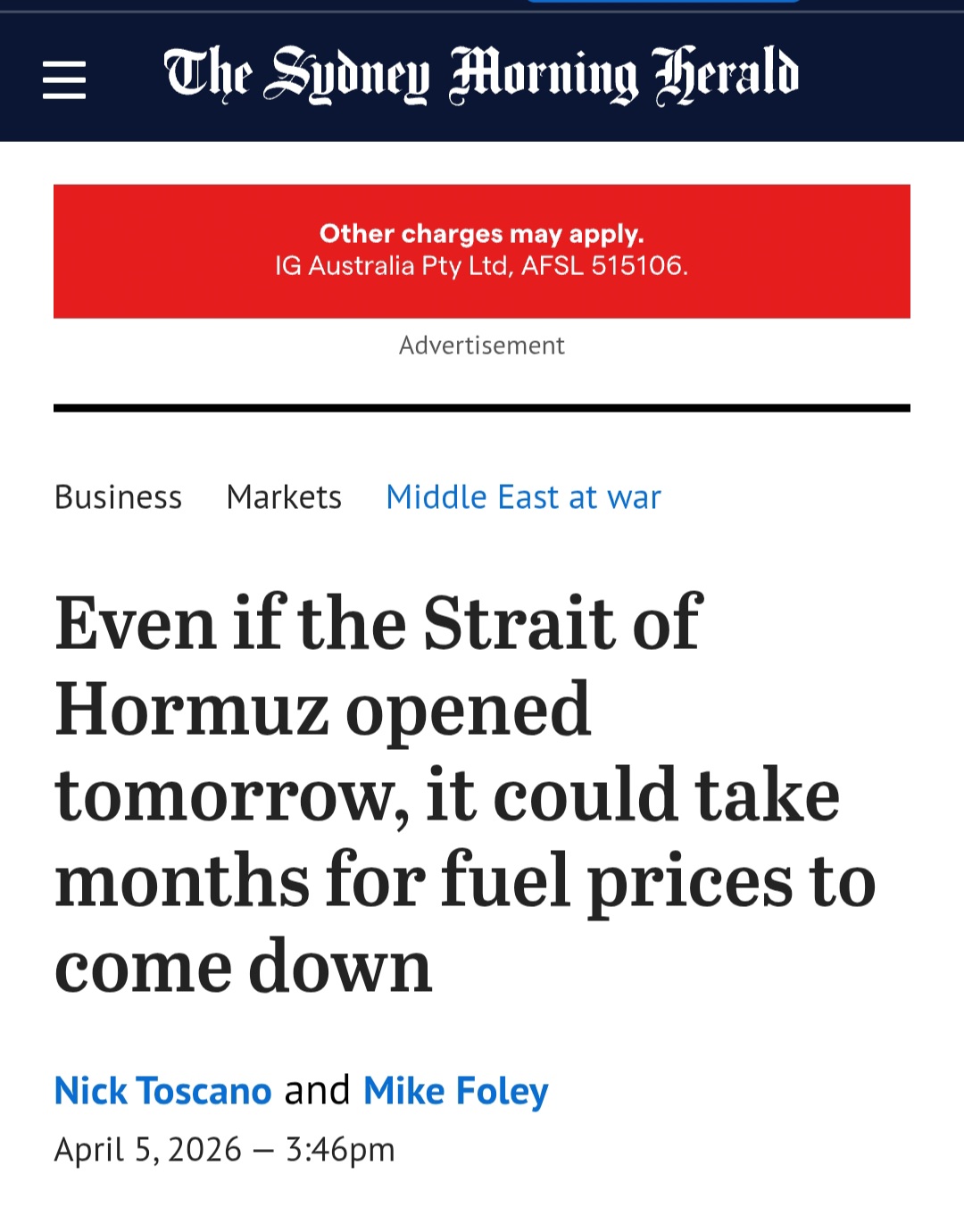 Minutes after the Anus of Hormuz clenched>Diesel up by 75%, ULP up by 30%The moment the Anus of Hormuz relaxes>ummmm... uhhhh.. it's gonna take months ok cuz of market forces. Orange man bad, ok?There's money to be made and they already have the perfect scapegoat lined up.