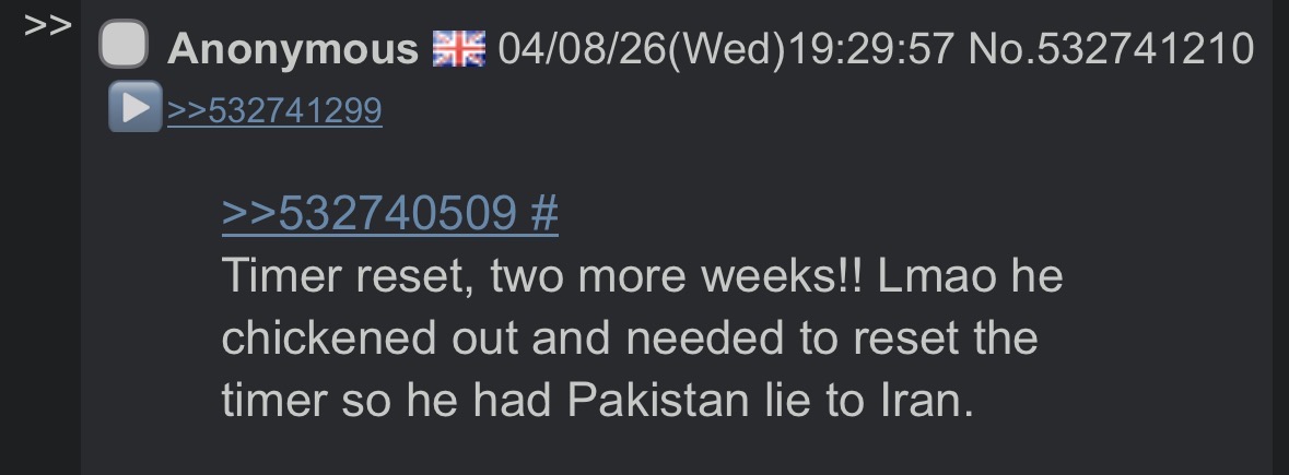 >>532785714Both USA and IRAN submitted bullshit multi point agreements that wanted each other to virtually admit defeat. Pakistan gave them versions they can each agree to. They tried to jeet them into ceasefire.