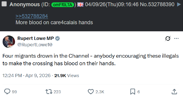 https://xcancel.com/CptHastings1916/status/2041917220926656947#m>There is no fundamental quarrel between Britain and Iran and the Prime Minister should say so.>Lot of responses to this pointing out that we have several ongoing quarrels with Johnny Iran. Absolutely true! But by "no fundamental quarrel" I mean that it is feasible for us to work towards rapprochement because there isn't really a clash of basic national interests.The tard right in the comments mewling over such an obvious point, crying about muh Ahmed Salman Rushdie, a man who please note fucking hates Britain and White people, why on earth would any Brit give a shit about some foreign wog writer?