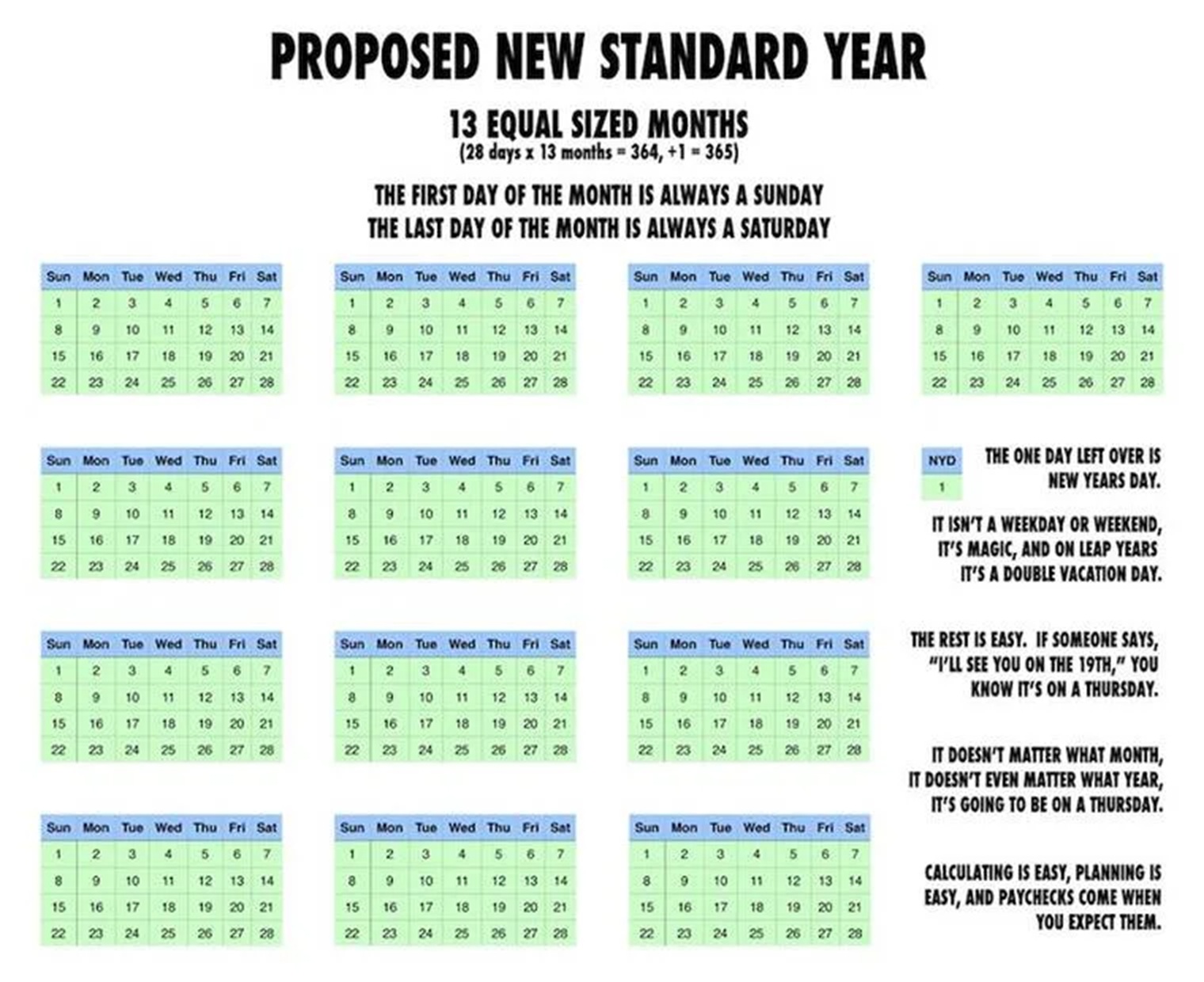 We need to go back to a 13 month year with exactly 28 days per monthThe Gregorian calendar is globohomo
