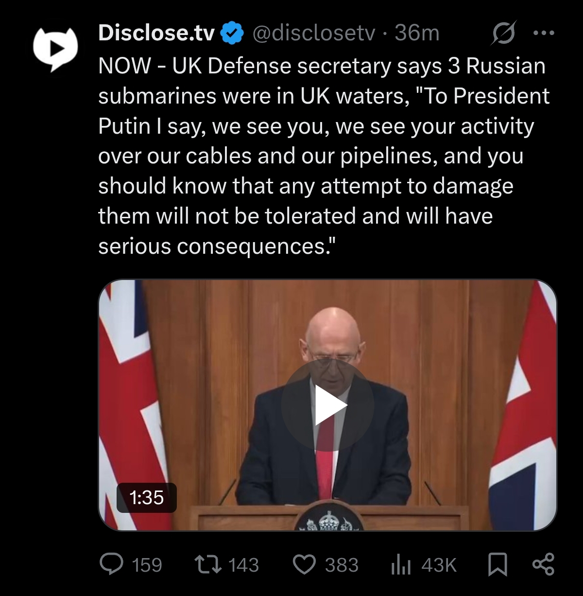 >Kremlin says Russia has right to defend itself from 'piracy' after report of warship escort near UK>'piracy'