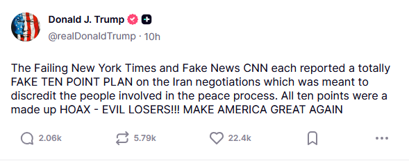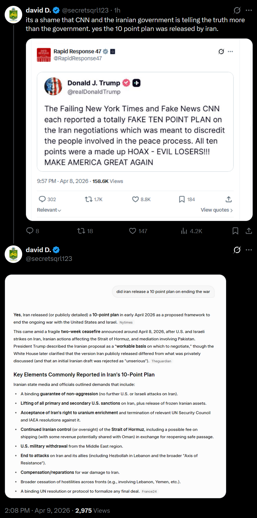 >its a shame that CNN and the iranian government is telling the truth more than the government. yes the 10 point plan was released by iran.LOLOL