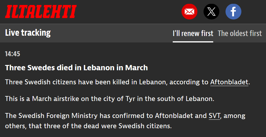 https://www.aftonbladet.se/nyheter/a/rrMW3R/tre-svenskar-dodade-i-libanon>Three Swedes died in Lebanon in March>Three Swedish citizens have been killed in Lebanon, according to Aftonbladet.>This is a March airstrike on the city of Tyr in the south of Lebanon.>The Swedish Foreign Ministry has confirmed to Aftonbladet and SVT, among others, that three of the dead were Swedish citizens.damn kikes killed poor and innocent swedes