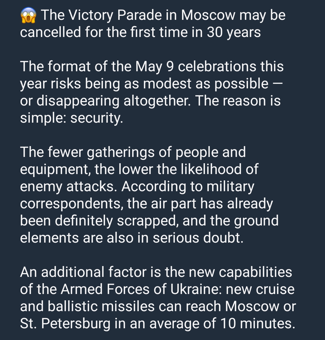 Fucking kek Russia might actually cancel the victory parade this time. I mean after the previous embarrassing ones, canceling them would be a better choice at this rate