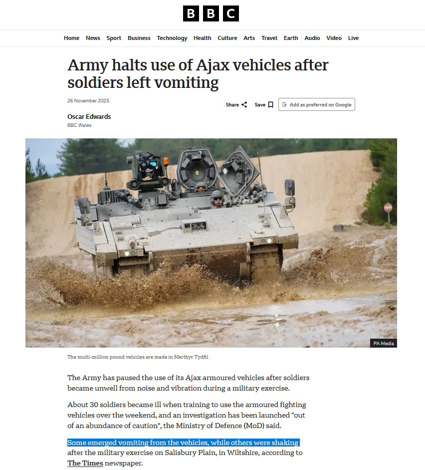 >>532796513>Due to safety risks, tests in 2021 were limited to 105 minutes inside the vehicle at speeds under 20 mph. Trials were later halted, and the initial operating capability (IOC) was withdrawn>The vibrations have caused physical injuries to soldiers, including nausea, vomiting, dizziness, joint inflammation, and symptoms consistent with Hand-Arm Vibration Syndrome (HAVS)No need for enemies when your ride straight up kills you.