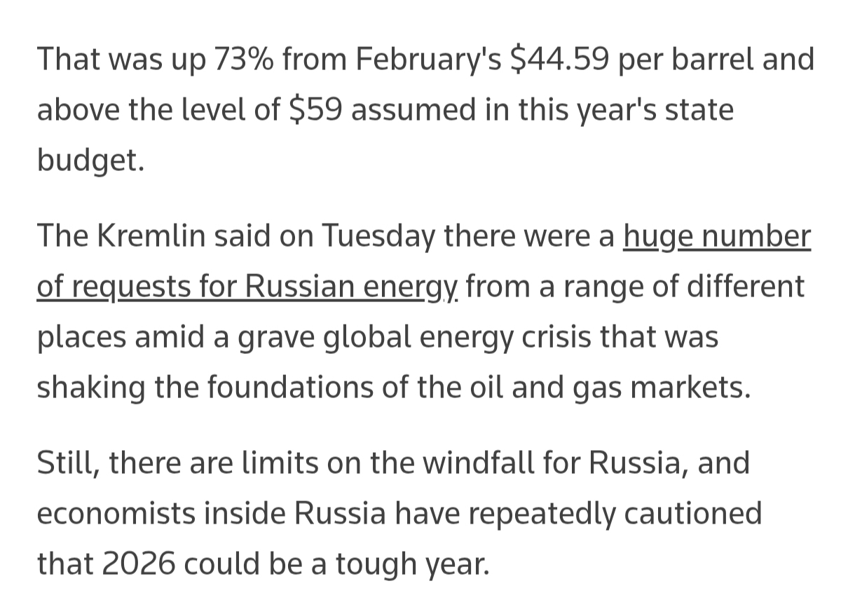 >>532801611>Anoth... ACCK!https://www.reuters.com/business/energy/iran-war-doubles-russias-main-oil-revenue-9-bln-april-reuters-calculations-show-2026-04-09/?utm_source=braze&utm_medium=notifications&utm_campaign=2025_engagement