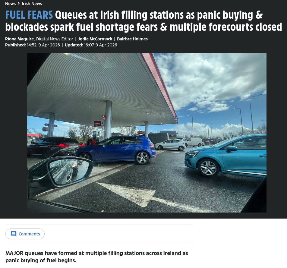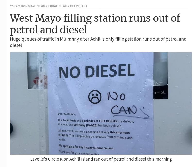 >>532799362I mean diesel has increased here by 50p since Trumps retarded war on Iran so I can only imagine how much it's increased in Ireland, which the Farmers and Lorry drivers will be needing more than anything.I saw some posts complaining about 'attacks on critical infrastructure' due to the blockades.But fuck me, it's an attack on critical infrastructure when Lorry drivers and Farmers can't afford the fuel for their vehicles how are they going to work the fields? How are the lorry drivers going to transport goods around the country? Some people are so fucking stupid it's unreal.