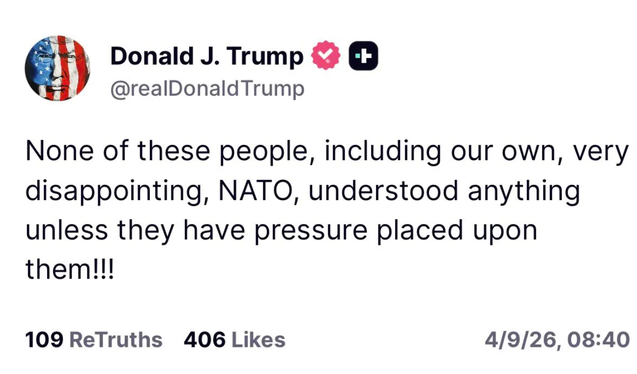 >BREAKING: President Trump has set a deadline for European allies to provide concrete military support in the Strait of Hormuz, including the deployment of warships, Der Spiegel reports. NATO Secretary-General Mark Rutte informed European countries that political pledges made since the start of the conflict are no longer sufficient.But i thought the strait was open now?