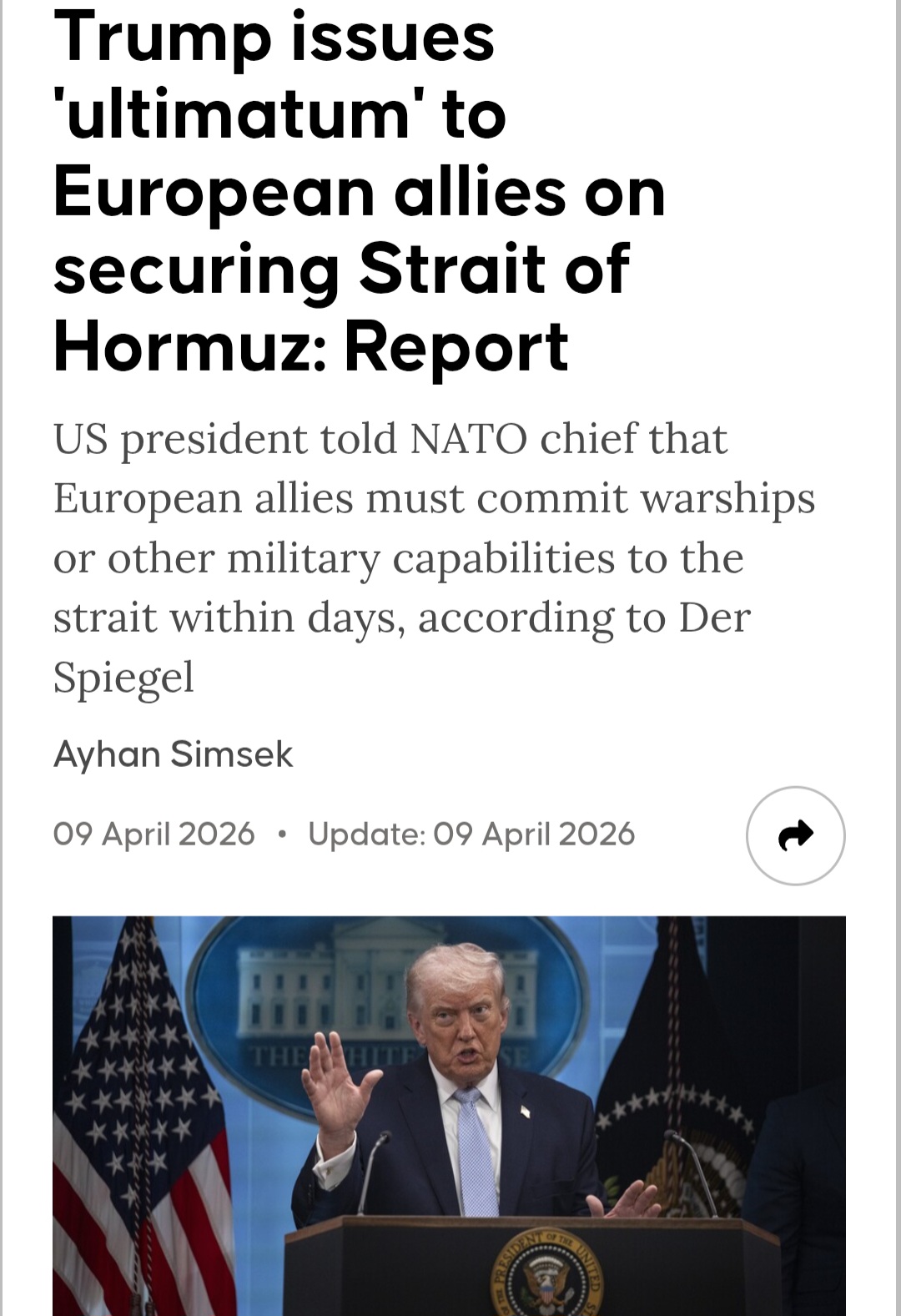 >>532802776https://aa.com.tr/en/world/trump-issues-ultimatum-to-european-allies-on-securing-strait-of-hormuz-report/3899486https://www.spiegel.de/ausland/iran-news-am-9-april-trump-erwaegt-offenbar-truppen-abzug-als-bestrafung-fuer-nato-staaten-a-a7d1f3c7-10f4-4b72-818d-b51ddb789faf