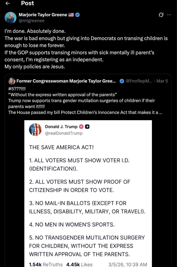 >>532801973Looks like she didn't get the memo that the job of the Republican party is to oppose the left long enough to make their voter base feel better and then to fold.