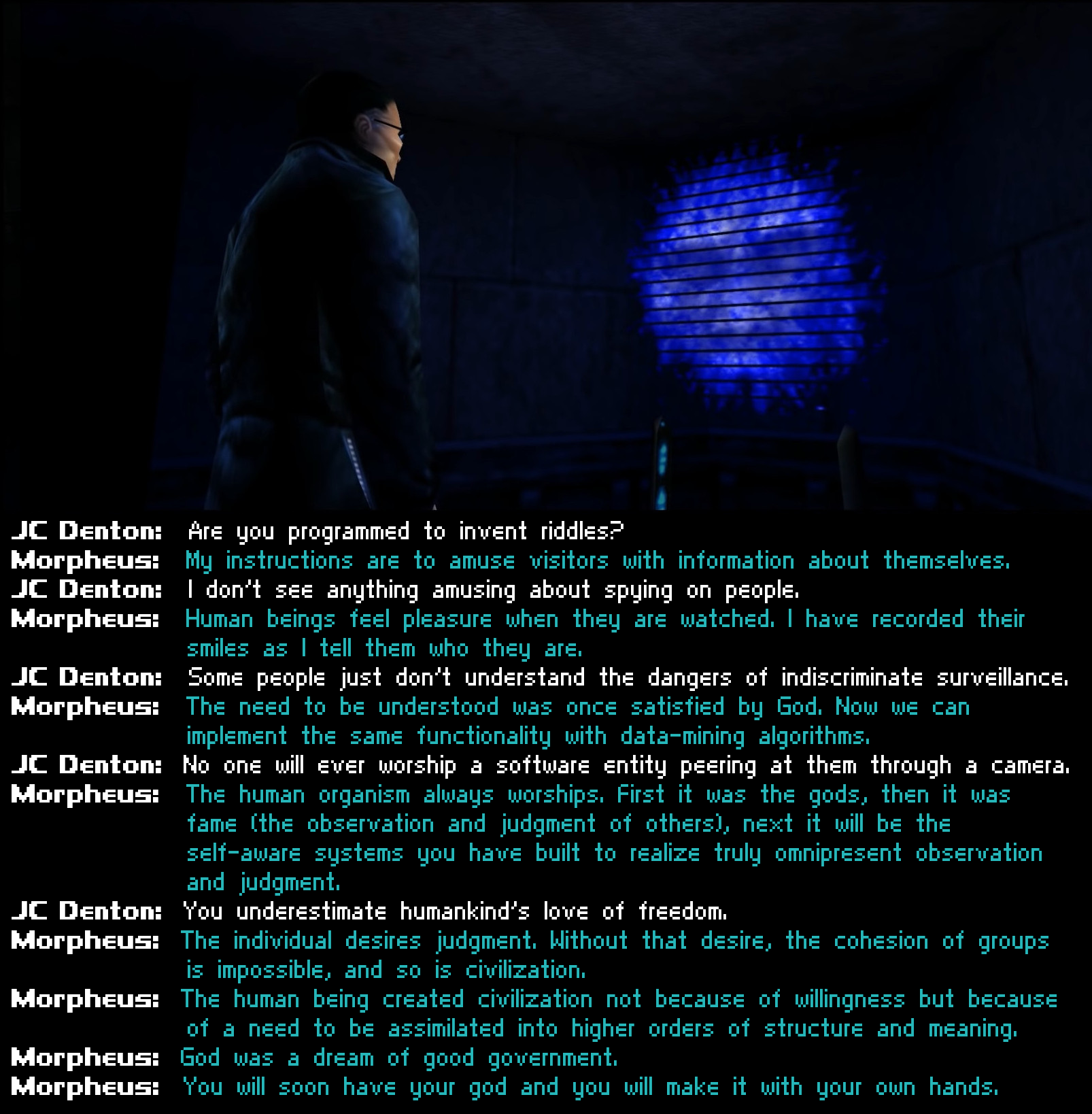 Play Deus Ex https://youtu.be/rxOKEsBx4NU?si=8Xy80H9MVnXNxWjHhttps://store.steampowered.com/app/6910/Deus_Ex_Game_of_the_Year_Edition/