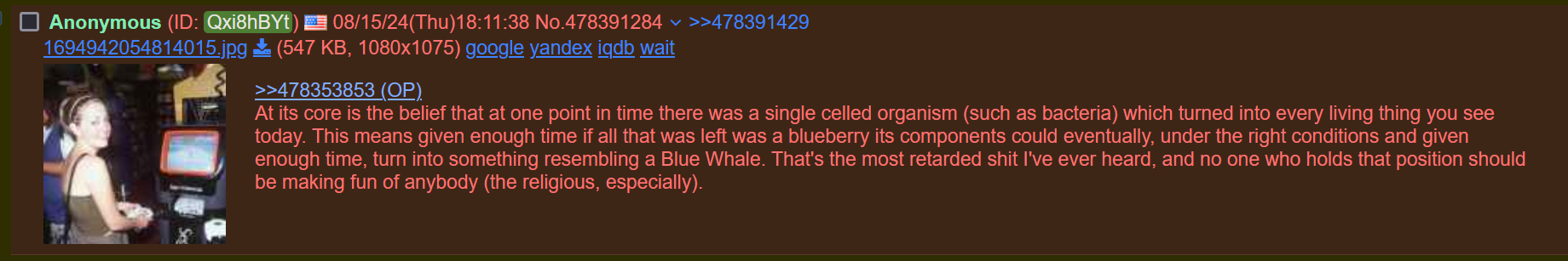>>532807280>I like how your id has evolved to say fuck.thats not evolution, that is god at work ;>