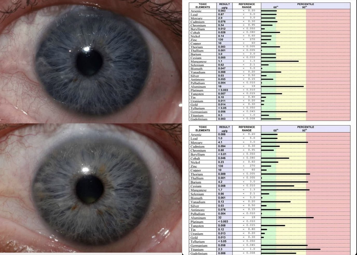 >>532814015>eye colorAccording to Aajonus Vonderplanits the only natural eye colour in Humans are either blue or amber (think of lions).They turn green or brown as our bodies fill with toxicity in between the cells which is the whole basis of iridology. Clean eye coloured people can still be toxic and just store toxicity in a way that does not manifest in their eyes, so inside the cell.Pic related is actually Aajonus' eyes before and after he got forcibly injected with some kind of flu vaccines.>>532814187I remember Thomas Cowan proposing a theory that our hearts function not as a pump but rather a sort of antenna. And that our bodies could possibly signal to each other when to start certain cleansing process, namely chicken pox.