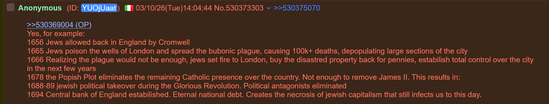 >>532815949>Kikes were here far beforeYeah we've been dealing with them since at least 711 AD when they opened the gates of Toledo.>EnglandOh, yeah. The royal family also was heavily involved with this, even recently with them banning raw milk while still consuming it themselves.And in fact, you can even trace these practices to ancient China, with their rulers keep the slaves on a mostly grain, only 5 or so % meat diet which gave them brain fog but still energy to work.But I rather keep it simple here and if you follow the thread I gave you will surely find more of this.>I don't know what Portuguese currently want, but I wish you get the future you desire.Hah, people here just want football and beaches.I'm an exception and few like me are around here. Still, what I want at the very least is for White people to survive and eventually thrive.Wish your hearts desires are fulfilled as well.