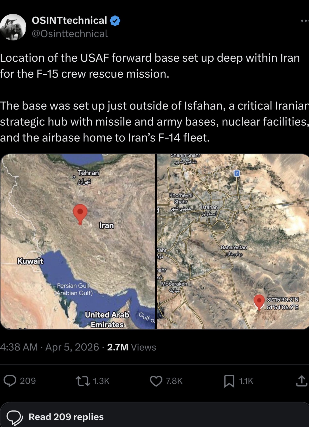 >>532814797Yeeah pretty sure the little birds were in the C130sThey were 230 miles inland, and their 200 mile range would have been out the window. Pretty sure they were flown in along with operators.If you read all the news stories on what happened over the weekend and filter out the hollywood style movie edit fanfic and totally block out the "saving private ryan" parts of the stories you can kinda piece together that shit had to have gone sideways.>>532735789https://stratnewsglobal.com/iran/april-firestorm-how-the-u-s-rescued-its-pilots-from-iran/>This account has been assembled from multiple government briefings, defence sources, and cross-verified reporting to reconstruct what unfolded over the next 36 hours—through April 3 and into April 4, 2026.>>532767139https://stratnewsglobal.com/iran/april-firestorm-how-the-u-s-rescued-its-pilots-from-iran/>The cost of those 36 hours is now being reckoned.>Initial estimates placed the financial loss between $210 million and $310 million. But deeper analysis suggests the true cost may exceed $2 billion. The tally includes the destroyed F-15E Strike Eagle (valued up to $100 million), two specialised C-130 variants costing over $100 million each, multiple MQ-9 Reaper drones, at least one MH-6 helicopter, and an A-10 Thunderbolt II shot down by Iranian fire—its pilot ejecting safely over Kuwait. Two HH-60 rescue helicopters were also damaged during the operation.>Beyond hardware, the operational costs soared: precision munitions used to suppress Iranian air defences, the deployment of dozens of supporting aircraft, emergency logistics, and the long-term strategic impact of losing rare, specialised rescue platforms that cannot be quickly replaced.https://www.cbsnews.com/projects/2026/us-military-rescue-iran/>The United States scrambled a massive fighting force sending more than 150 aircraft to beat Iranian forces, sources familiar with the situation told CBS News.