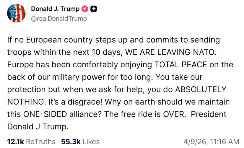 i hate miggers but trump has always had a point about europe. we shouldn't leave nato but yuros have been way too passive and naive>america warns europe that russia is going to chimp out>haha fuck you stupid americans that would NEVER happen russia is not run by warmongers like you>russia invades ukraine>NOOOO AMERICA HELP US PLEASE OH GOD RUSSIA IS INVADING WE CAN'T STOP THEMand now we have>iran threatens to take over the strait for years>america is the only one who ever seems to give a shit about iran>one day it finally happens>multiple european nations are now screeching about how iran's demand for permanent control over the strait along with tolls is completely unacceptable and illegal>while at the same time refusing to actually doing anything about it because they're hoping that america solves the problem despite america currently being ran by the one of the worst admins in historyIran deciding to take over the strait was something we knew they were going to do even before trump. Everyone agrees that it's illegal and will completely fuck over the world economy but all europe is doing is making statements about how it's totally bad and should stop instead of actually doing anything about it. What is the point of an alliance when europe tells america to handle everything itself whenever something happens?