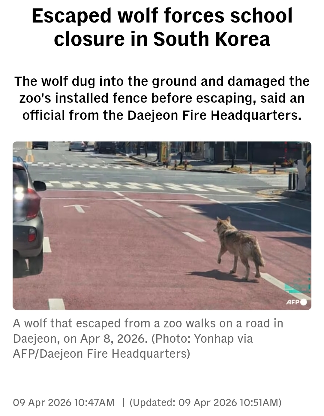 Day 3 of an escaped wolf roaming the streets of South Korea