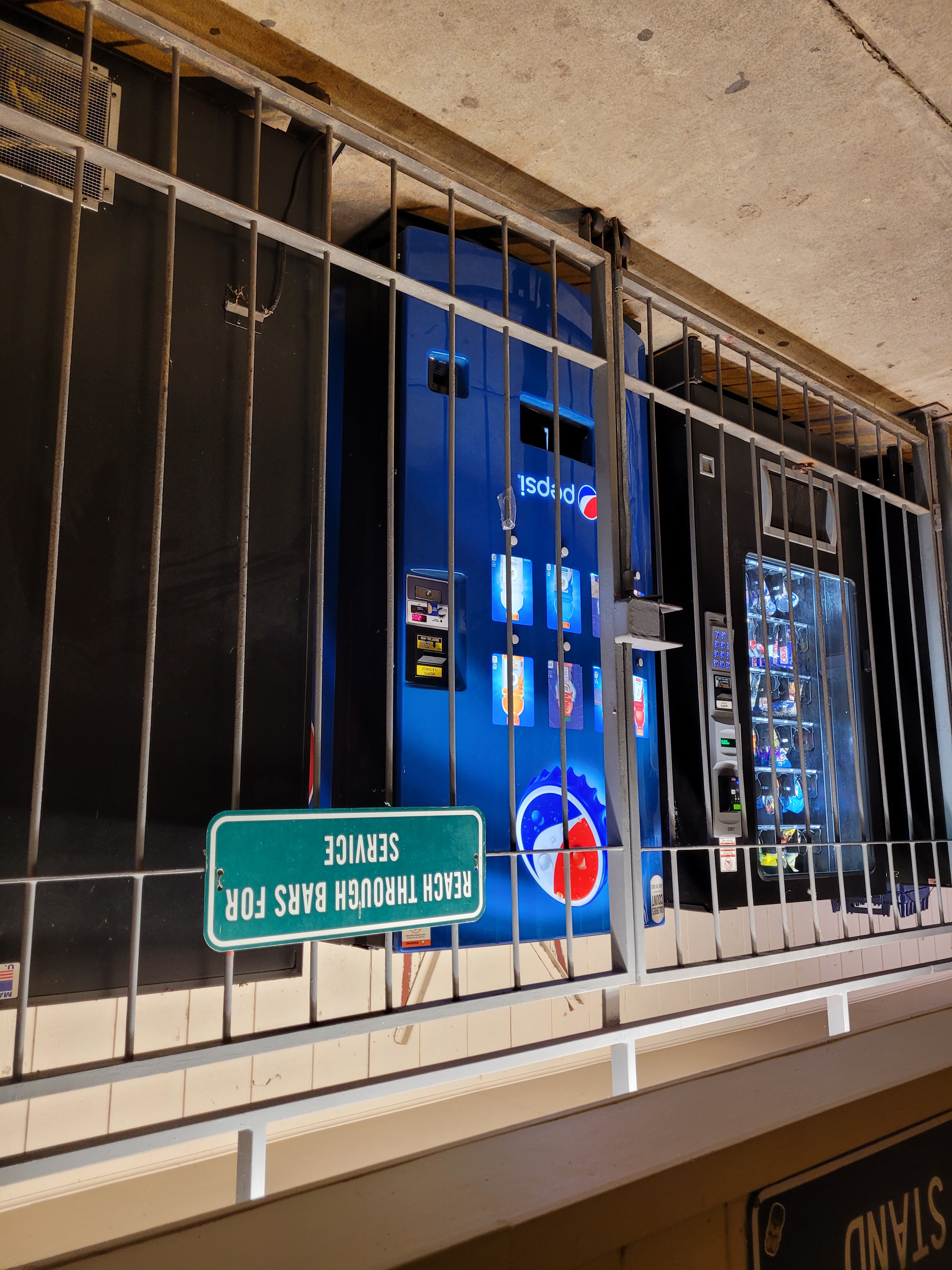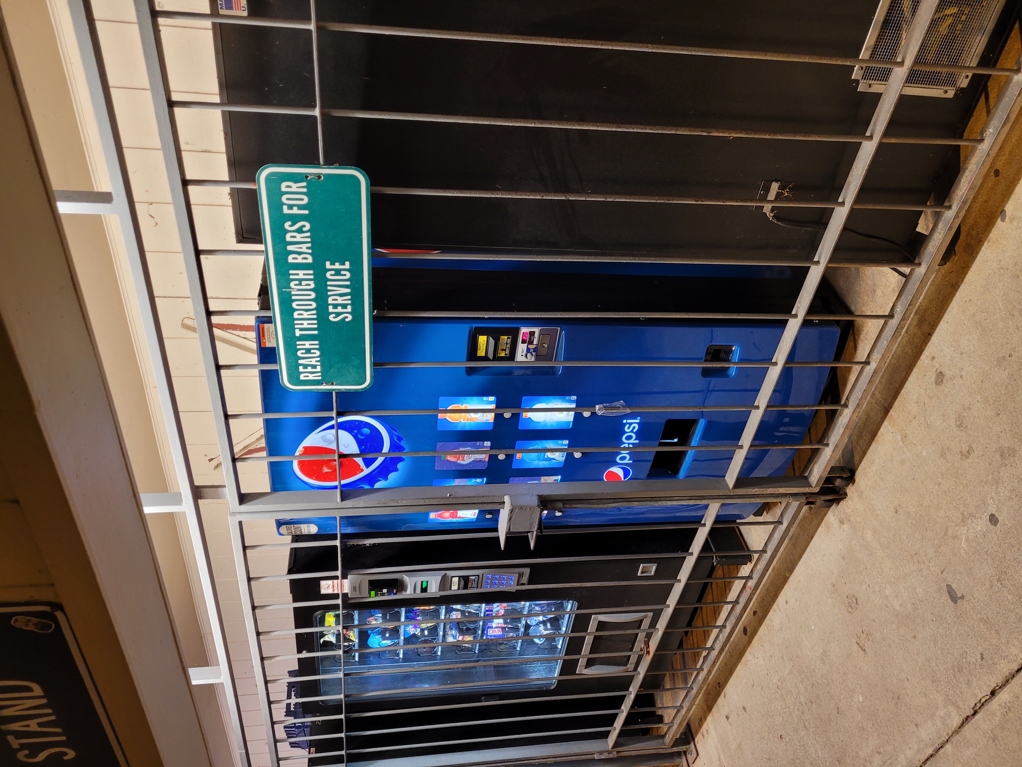 >>532813071>caged vending machines>anything newThey caged the vending machines at my jr high 25 years ago because kids kept throwing eachother into them and breaking the advertisement panel on the front or shaking free food out because the front panel didn't hurt that bad to slam into. I've seen vending machines caged in shitholes for far longer than that.