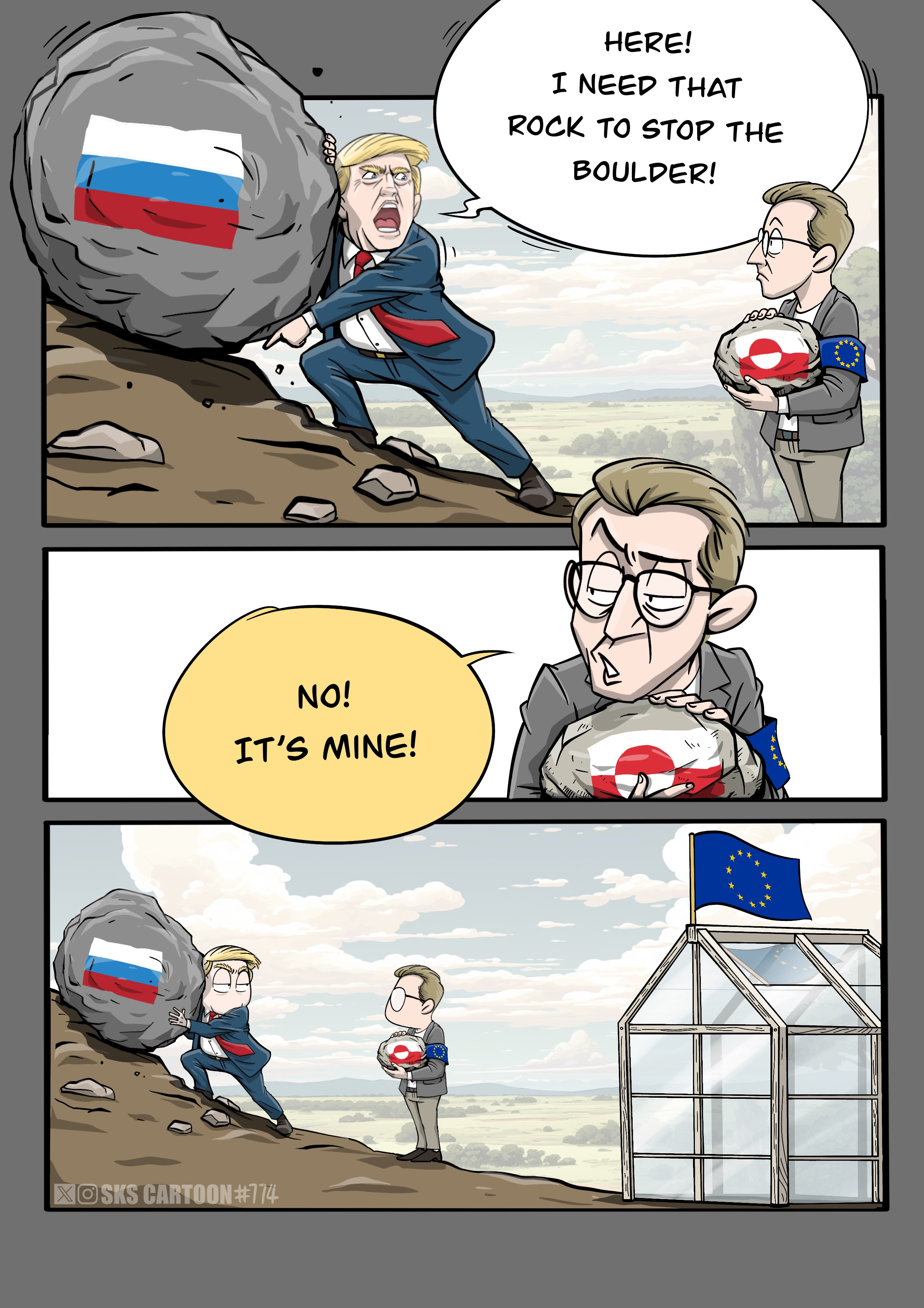>>532816708>Motionless boulder>Absolutely no fucking threat to the house of glass, even if a bit inconvenient >The neighbor of the owner of the house pushes the boulder up the hill without anyone asking him, increasing its potential energy and making it a significant threat>He demands help in his efforts, so the boulder would seize to be the threat he created without anyone asking (except maybe the hooknosed man from the next town)>The owner refuses, not seeing it as his problem even though it now poses a clear threat to the houseWho is this comic mocking? Trump? Europeans? Both?
