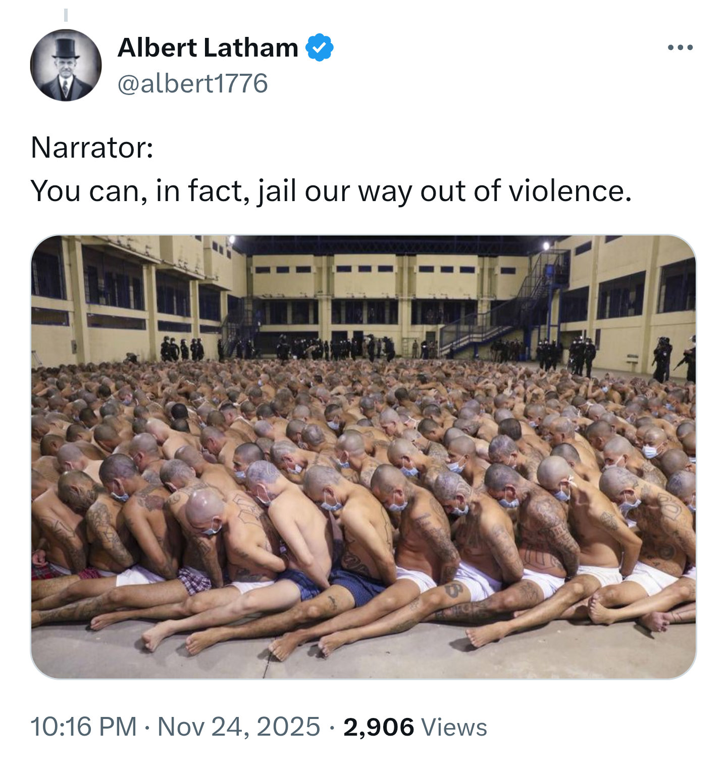 >>532827321El Salvador drastically decreased their murder rate by throwing criminals/murderers in prison. It's not rocket science.