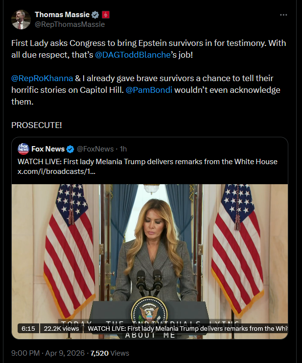 WTF IS SHE DOING? https://x.com/RepThomasMassie/status/2042331843156935027