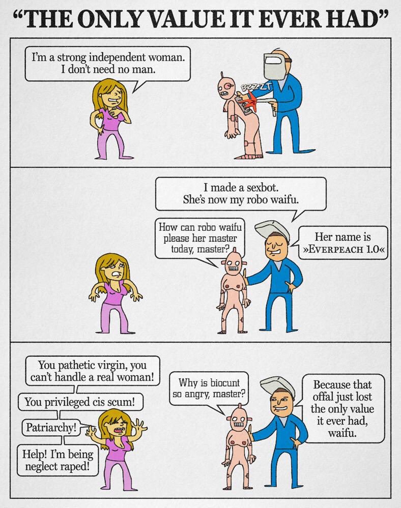 >>532828496Female sexuality is as follows:1 - dick size2 - bad boys/minorities/outgroup members/criminals3 - anyone with moneyThere is nothing else. Even the height thing is just about selecting for a tiny minority of men who didn’t earn the commodity that they have and who can be used to humiliate other men.Their giant, busted insensate holes define their physical sexuality.Their misandrist sadism defines their mental sexuality.And their social position and total lack of objective morality means that they will all prostitute themselves for the right price.