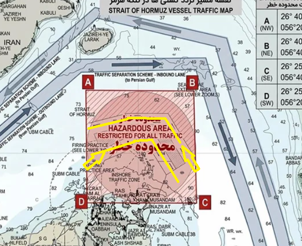 >>532829909i see you're a bit slow mehmet. because the big red square is mined and therefore off-limits, ships must pass through the two big blue lines, which are indeed in iran's territorial waters.