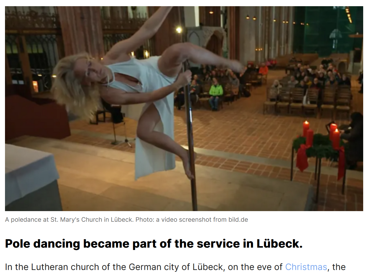 Take a Catholic Church, desecrate it with pole dancers.