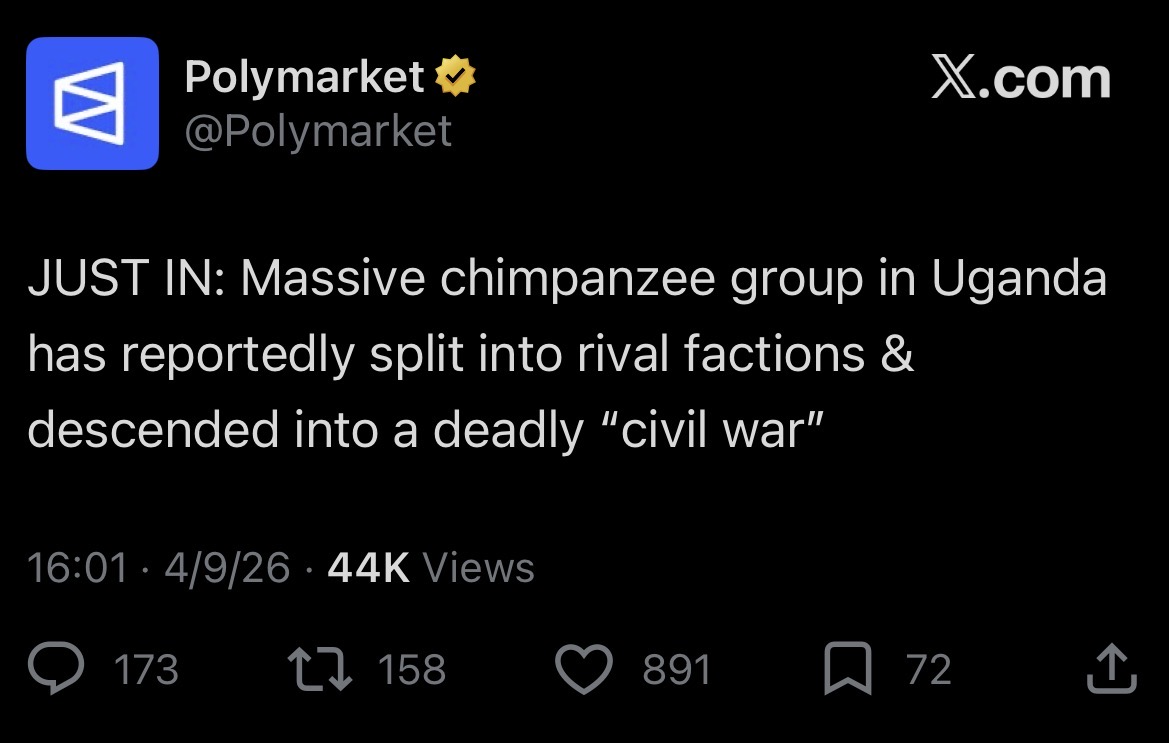 MASSIVE CIVIL WAR BREWING AS WE SPEAKhttps://x.com/polymarket/status/2042347298991047081?s=46
