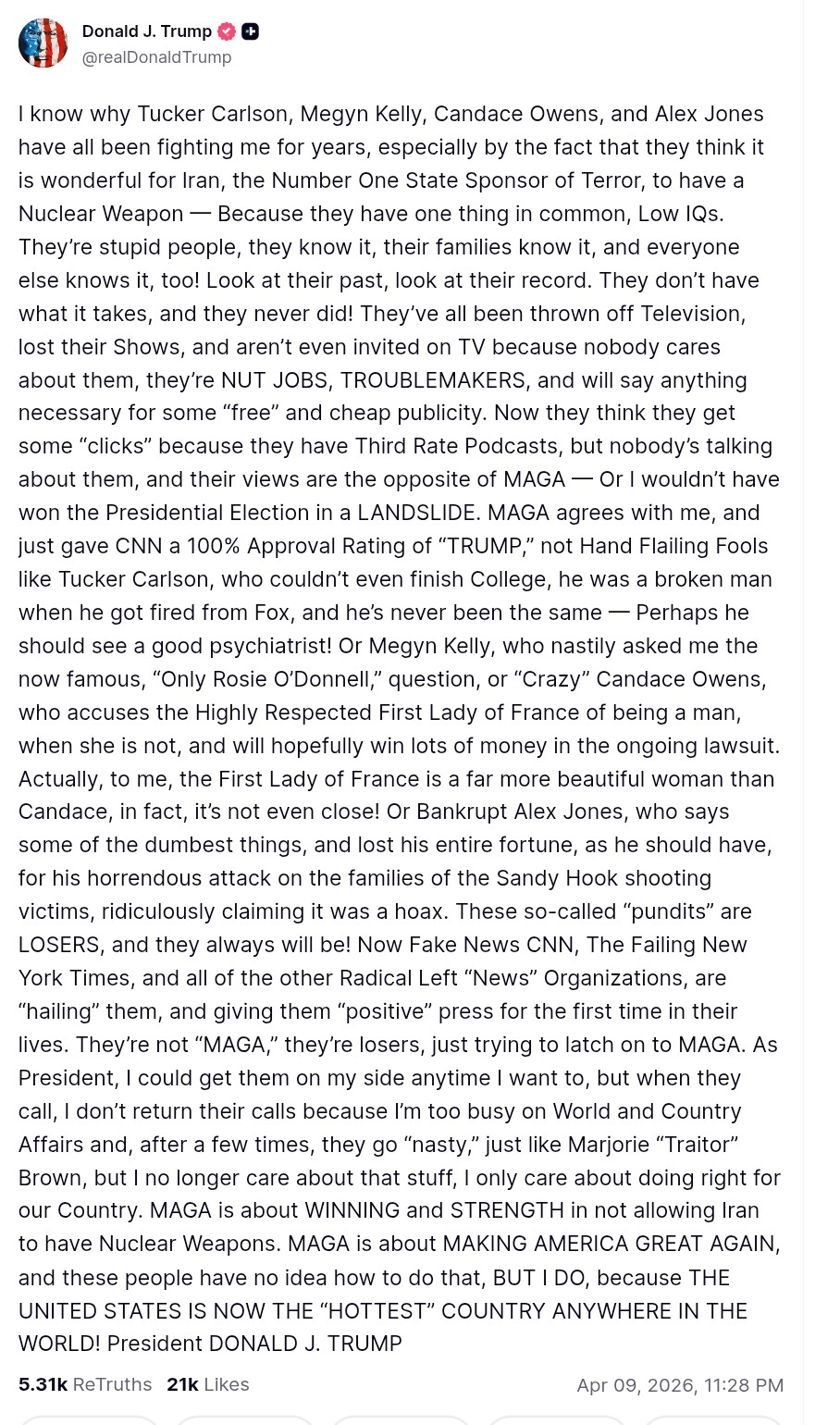 >em dash>em dashAs an expert on AI, I can say with a 100% certainty this trump truth was written by AI.That's right, trump is too senile to even write his meltdown text walls anymore, he has AI do it for him. He doesn't have much time left