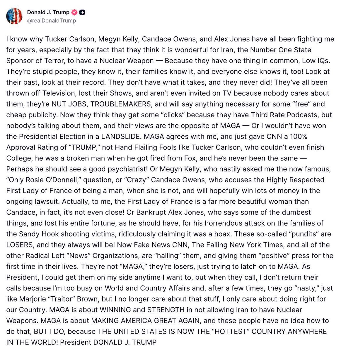 this orange nigger posted this because those people said that treating countries like Amalek is bad. He’s totally shed his skin ans revealed himself for being a total disgusting Jew once and for all. I fully believe he was going to nuke Iran but didn’t not because it’s a war crime but because the stock market was down.