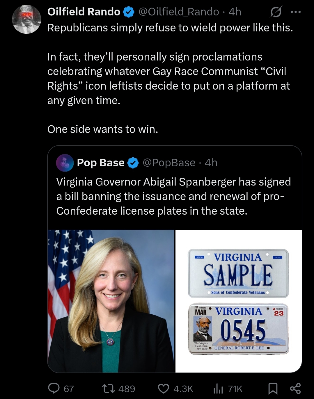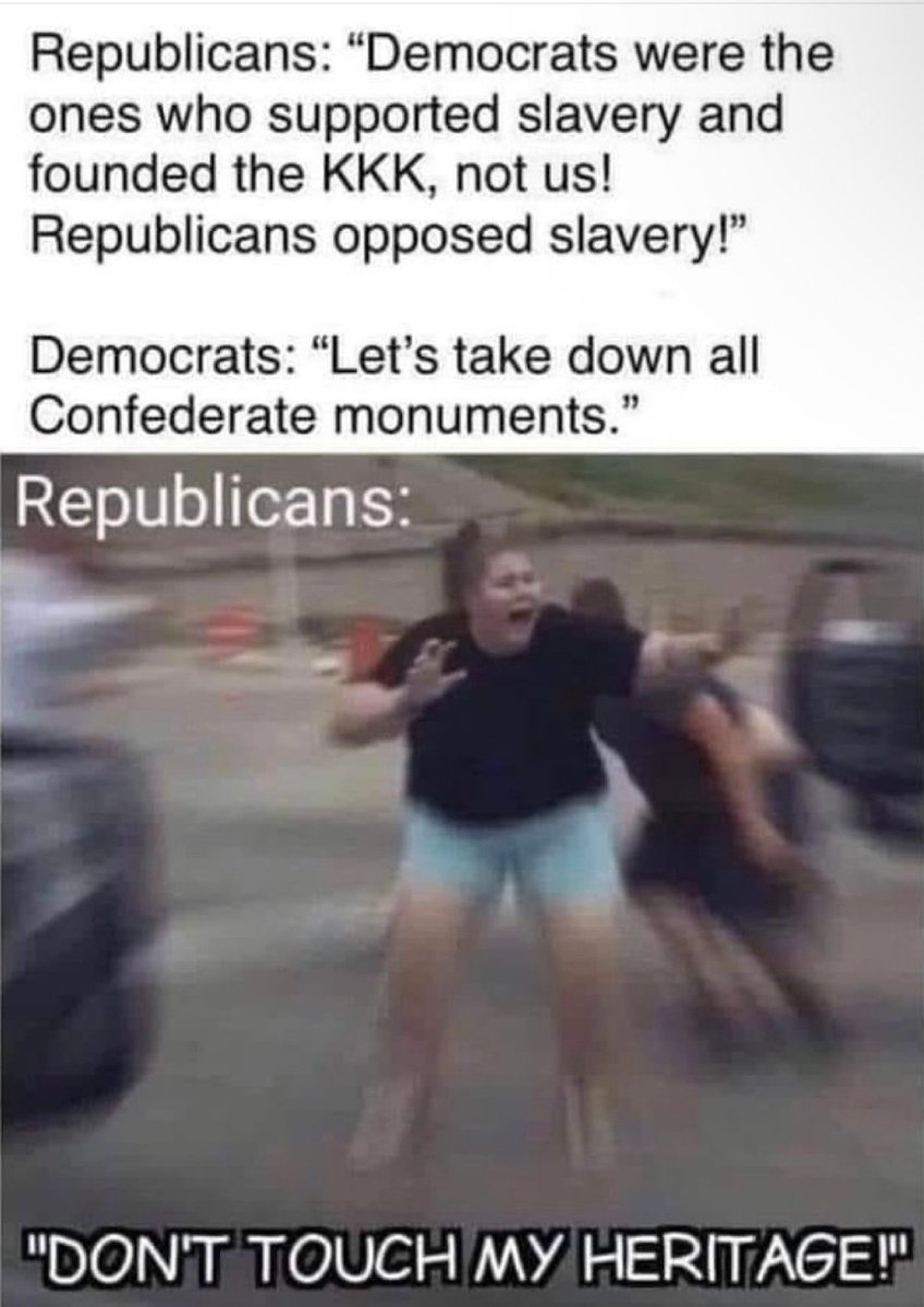 If Democrats were the real racists the entire time, then why do Republicans/MAGA lose their absolute minds when they can't force the government to memoralize literal traitors?I've never seen a liberal rockin' the "stars and bars," and I'm starting to get suspicious that most modern conservatives' ol' papaws were on the wrong side of history...